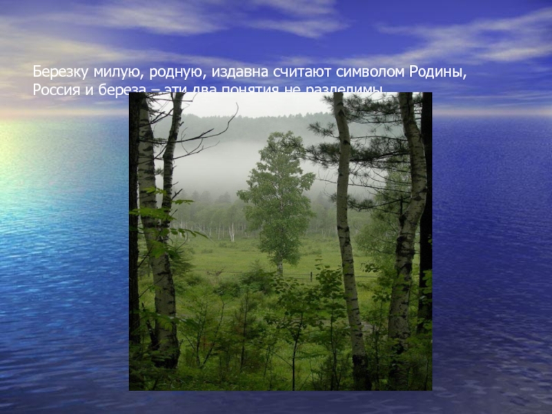 Слайд 7Березку милую, родную, издавна считают символом Родины, Россия и береза –