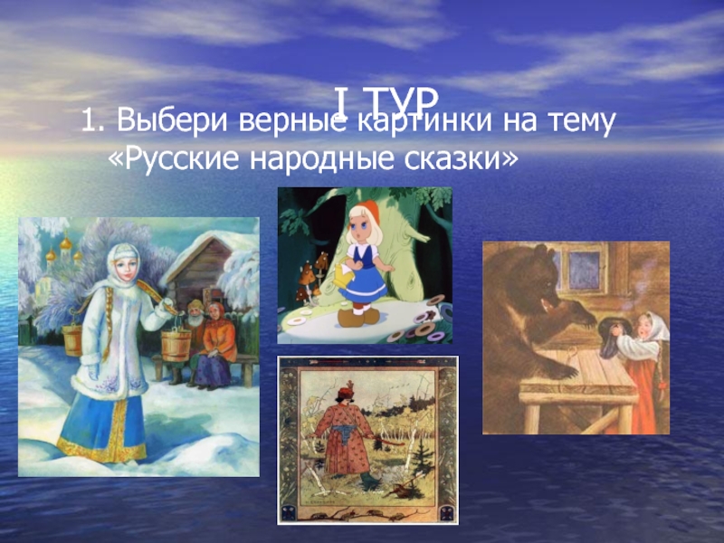 1. Выбери верные картинки на тему «Русские народные сказки»