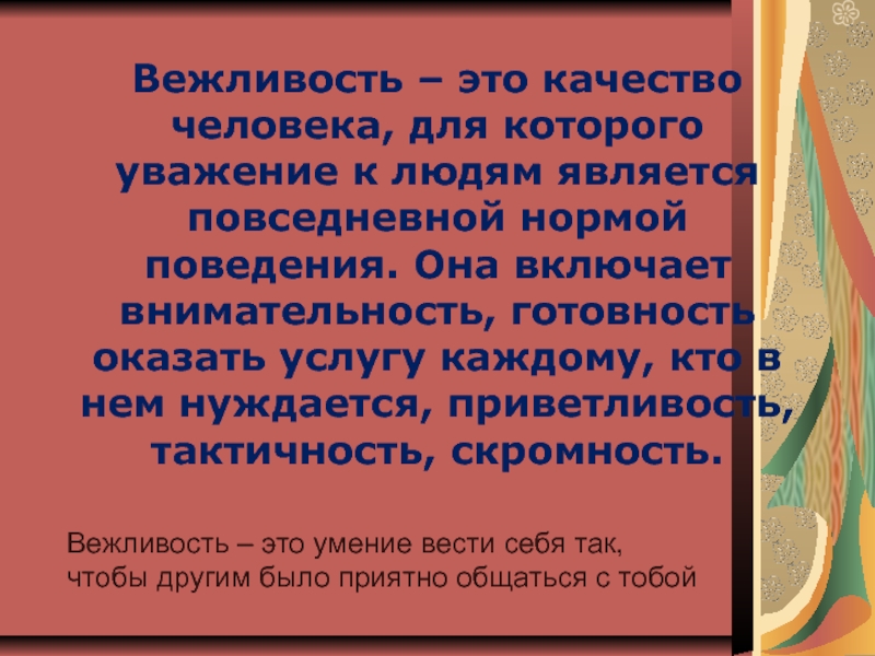 Вежливость – это умение вести себя так,