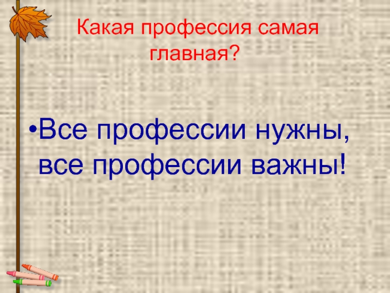 Какая профессия самая главная?Все профессии нужны, все профессии важны!