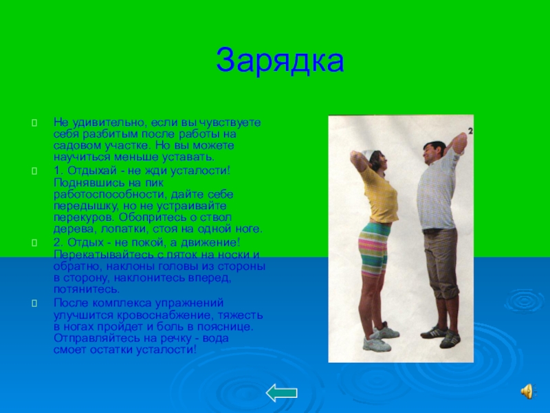 Зарядка Не удивительно, если вы чувствуете себя разбитым после работы на садовом участке. Но вы можете научиться