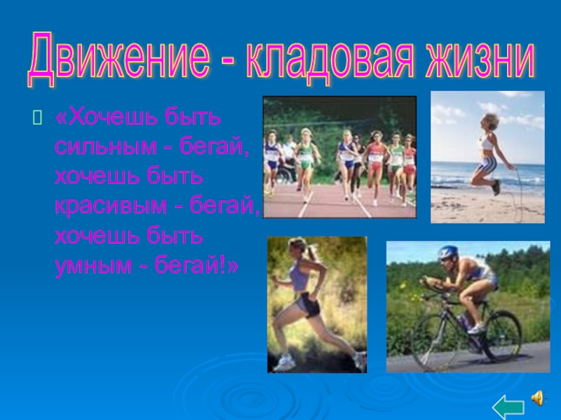 Движение - кладовая жизни «Хочешь быть сильным - бегай, хочешь быть красивым - бегай, хочешь быть умным