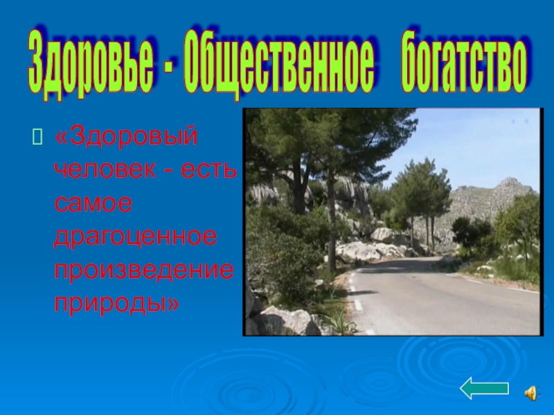 «Здоровый человек - есть самое драгоценное произведение природы»Здоровье - Общественное   богатство