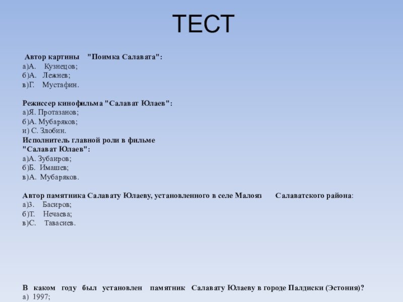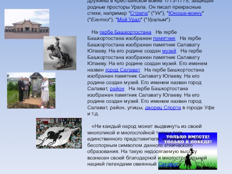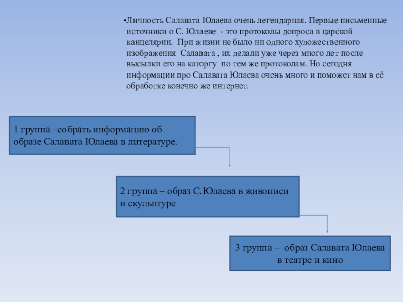 1 группа –собрать информацию об образе Салавата Юлаева в литературе.