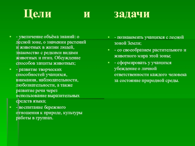 - сформировать у учащихся убеждение о личной ответственности каждого человека за состояние природной среды.