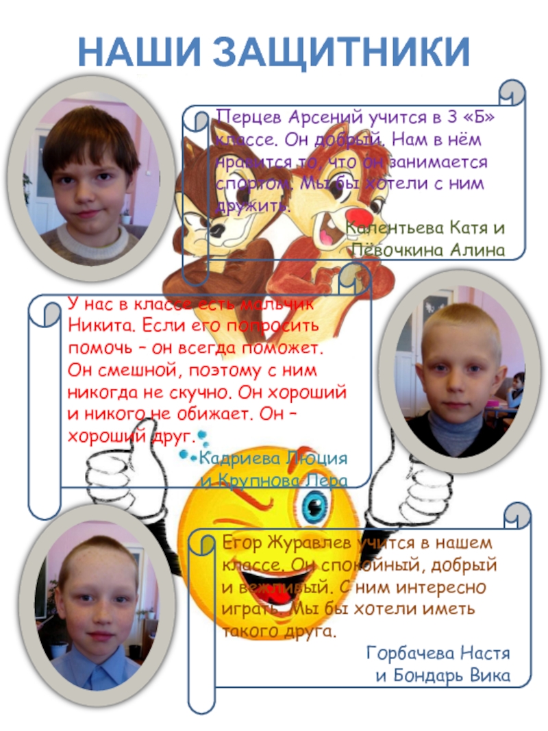 Егор Журавлев учится в нашем классе. Он спокойный, добрый и вежливый. С ним интересно играть. Мы бы хотели иметь такого друга.