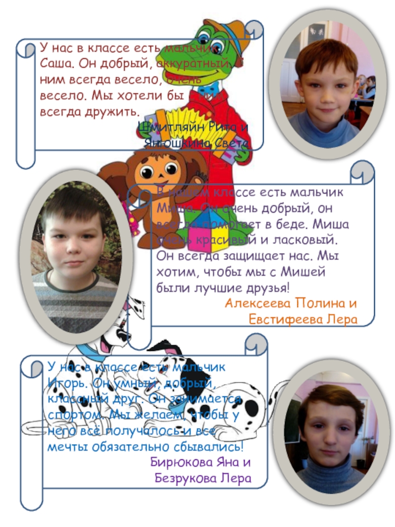 У нас в классе есть мальчик Игорь. Он умный, добрый, классный друг. Он занимается спортом. Мы желаем, чтобы у него всё получалось и все мечты обязательно сбывались!