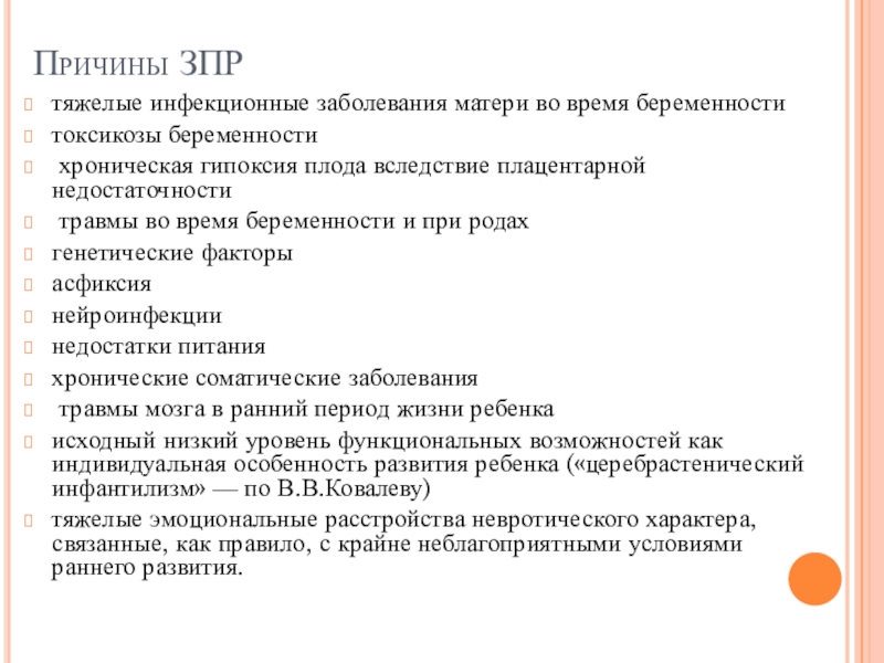 характера, препятствующие нормальному и своевременному созреванию мозга;