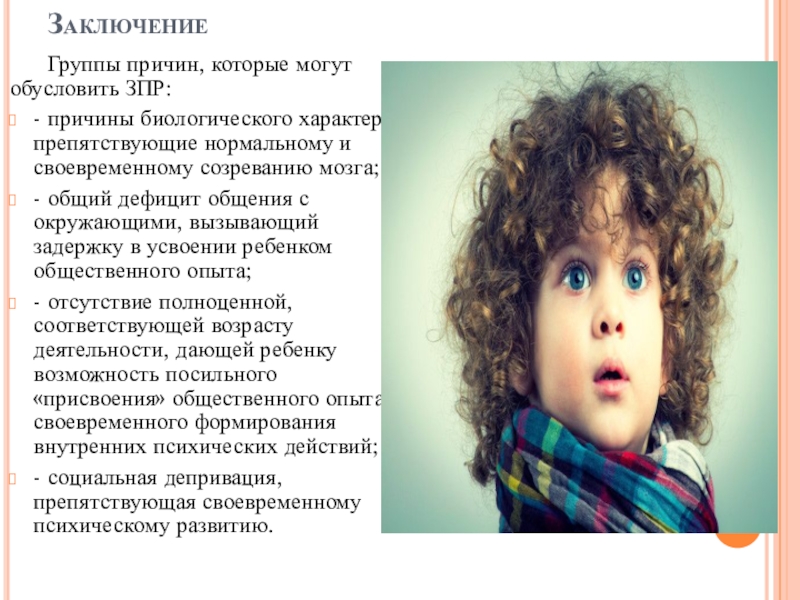 - социальная депривация, препятствующая своевременному психическому развитию.