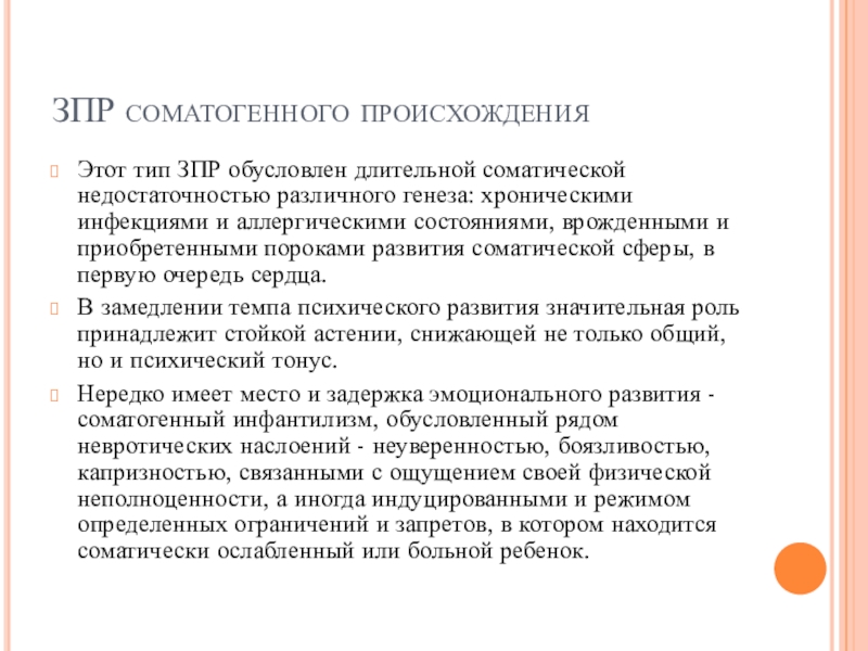 Этот тип ЗПР обусловлен длительной соматической недостаточностью различного генеза: