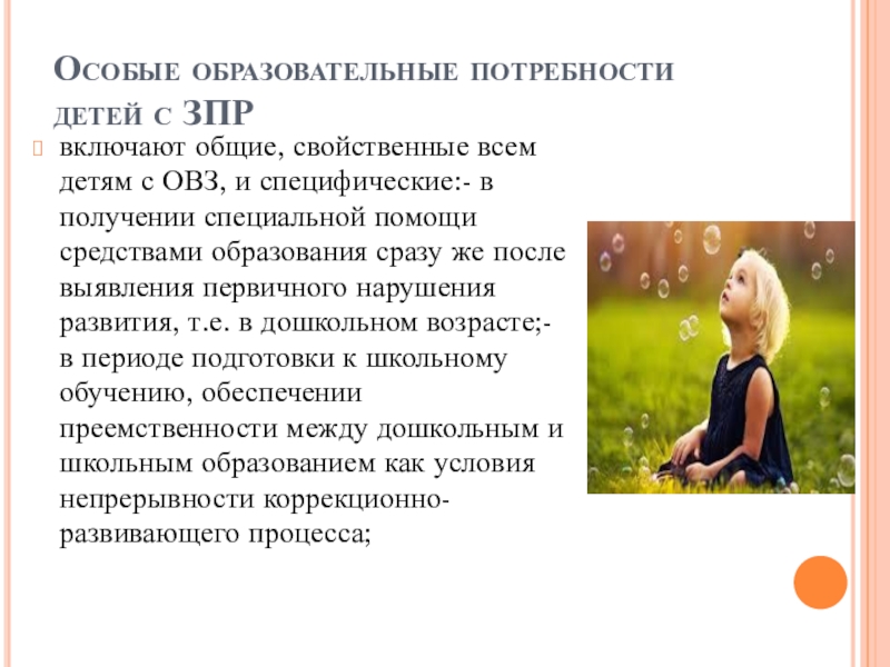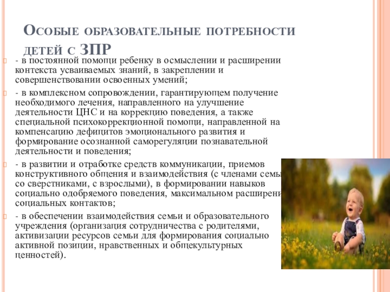 Слайд 17Особые образовательные потребности детей с ЗПР