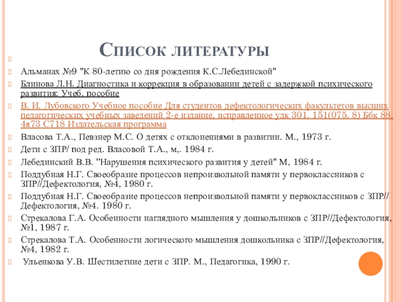 Стрекалова Т.А. Особенности логического мышления дошкольника с ЗПР//Дефектология, №4, 1982 г.