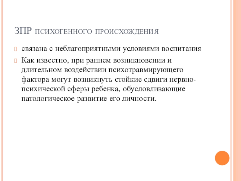 возникновении и длительном воздействии психотравмирующего фактора могут возникнуть стойкие сдвиги нервно-психической сферы ребенка, обусловливающие патологическое развитие его личности.