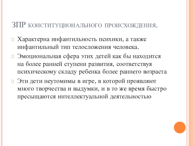 возрасте, если к окончанию этого периода остаются признаки недоразвития психических функций, то речь идёт уже о конституциональном инфантилизме или об умственной отсталости.