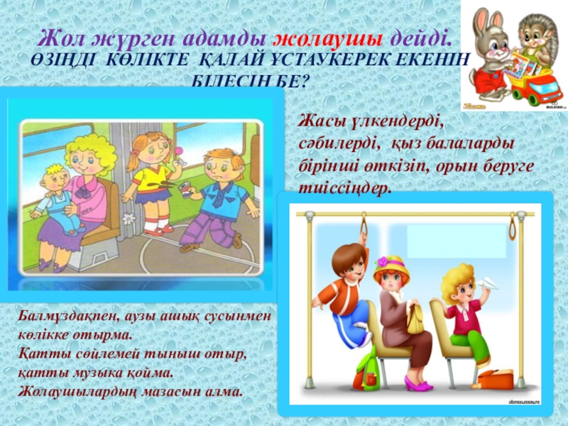 сәбилерді, қыз балаларды бірінші өткізіп, орын беруге тиіссіңдер.