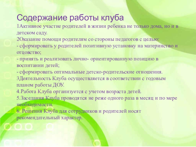 6. Решения Клуба для сотрудников и родителей носят рекомендательный характер.