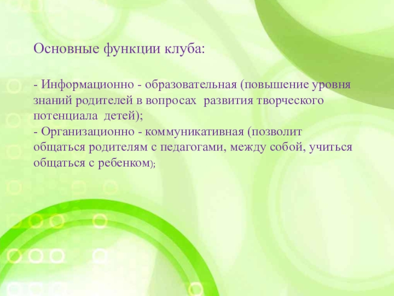 Основные функции клуба: