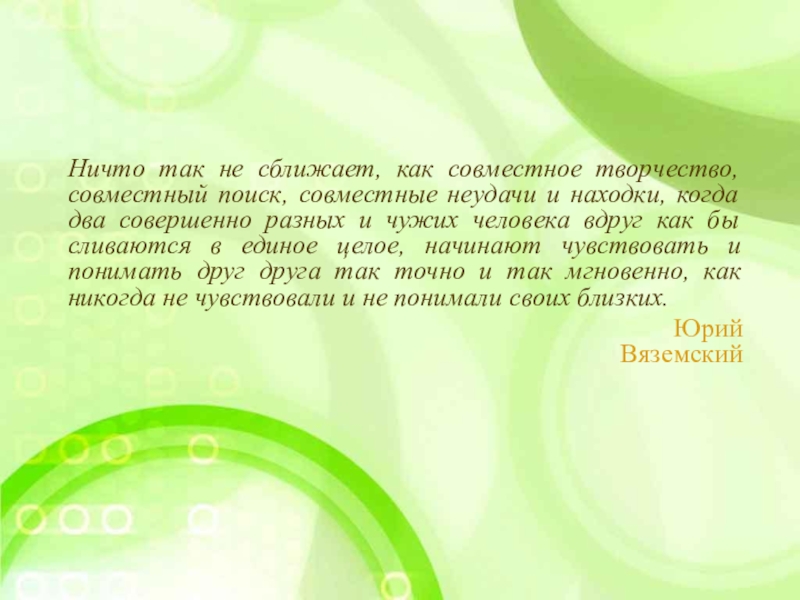 Ничто так не сближает, как совместное творчество, совместный поиск, совместные