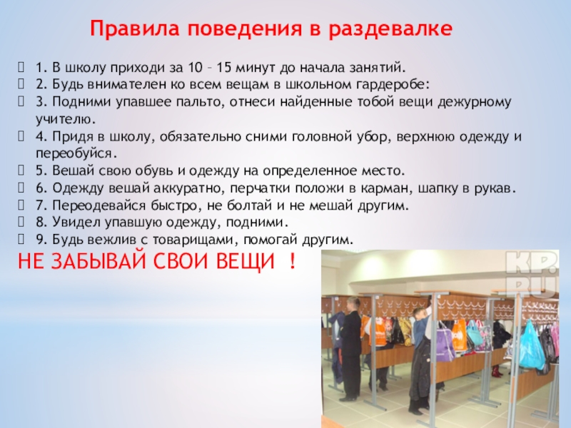 2. Будь внимателен ко всем вещам в школьном гардеробе: