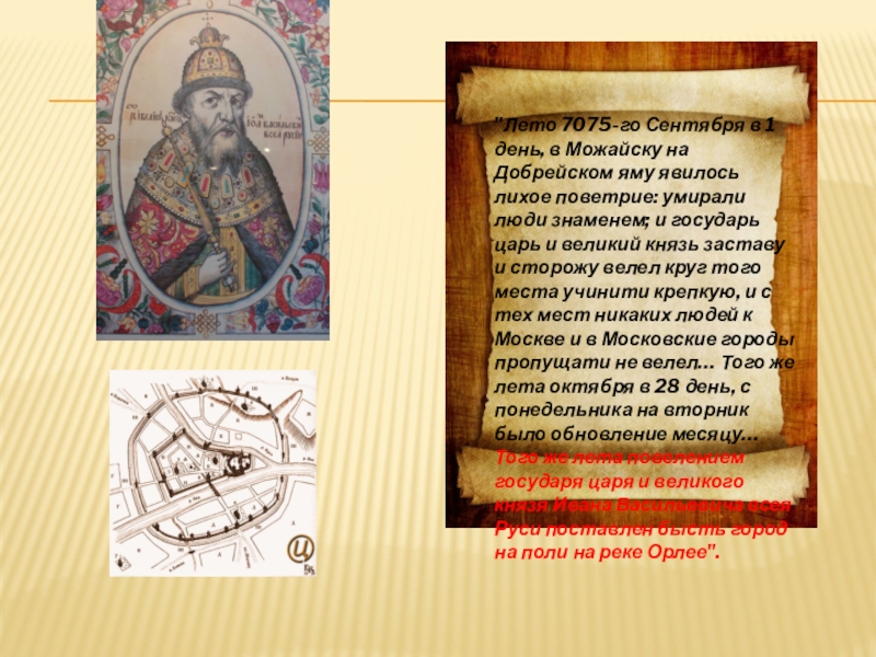 Слайд 14"Лето 7075-го Сентября в 1 день, в Можайску на Добрейском яму