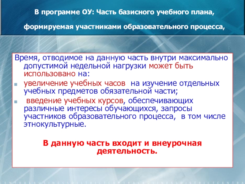 В программе ОУ: часть, формируемая участниками образовательного процесса
