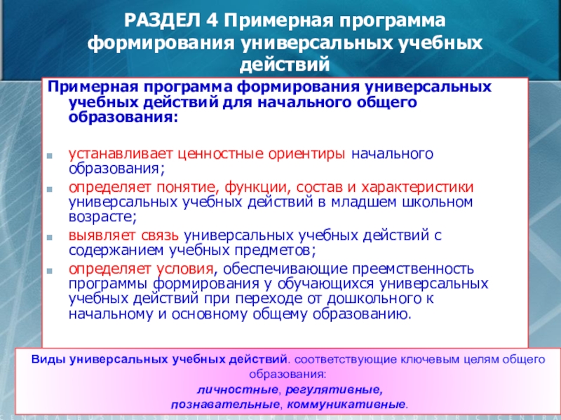 Виды универсальных учебных действий. соответствующие ключевым целям общего образования:
