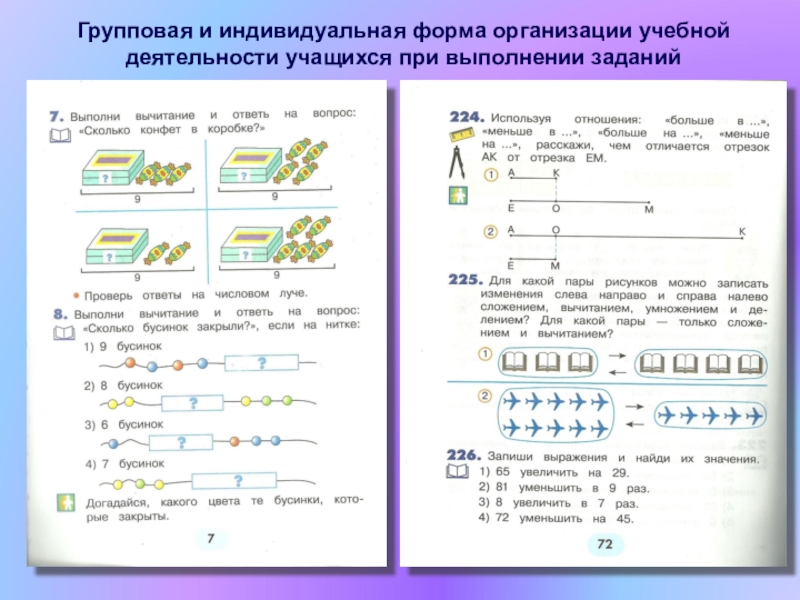 Групповая и индивидуальная форма организации учебной деятельности учащихся при выполнении заданий
