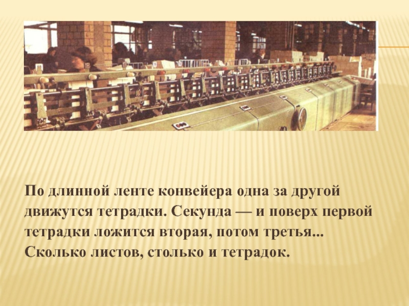 Слайд 34По длинной ленте конвейера одна за другой