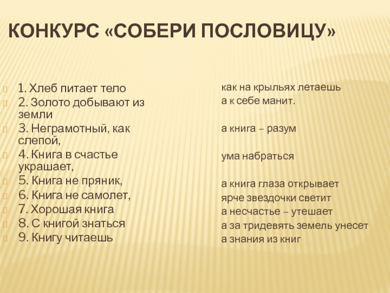 Слайд 39 Конкурс «СОБЕРИ ПОСЛОВИЦУ»