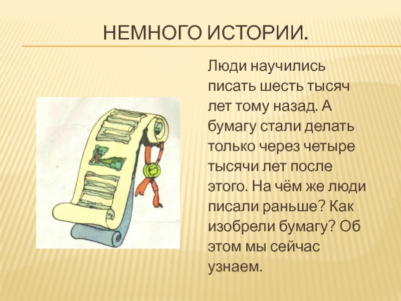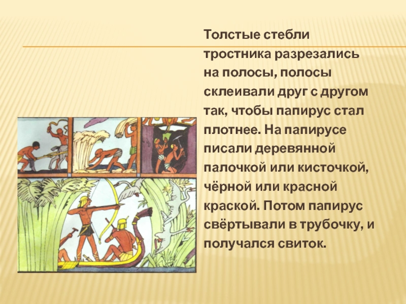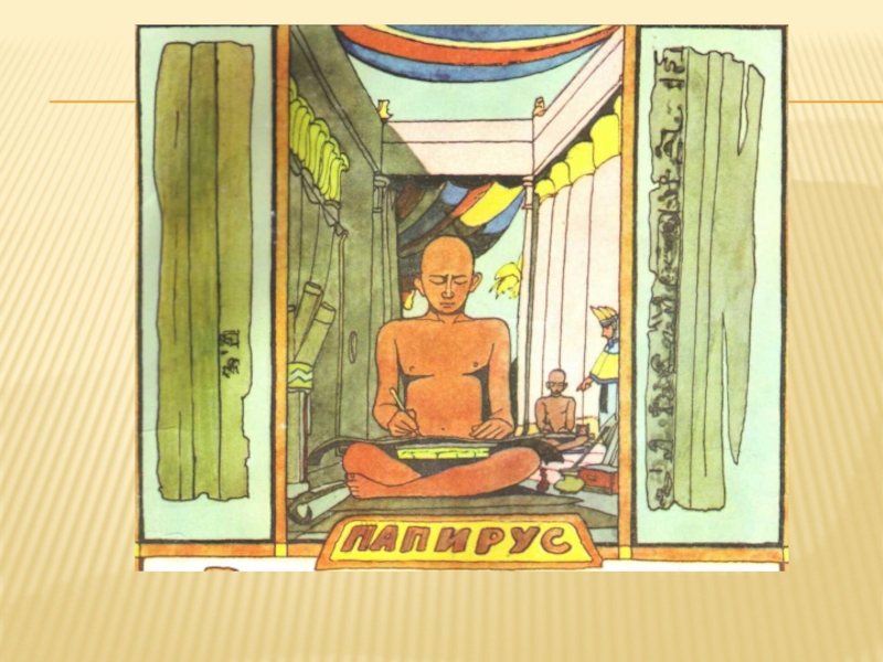 Слайд 13Сначала писцы писали на папирусе, который