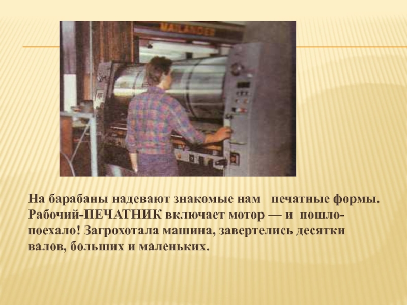 Слайд 32На барабаны надевают знакомые нам печатные формы.