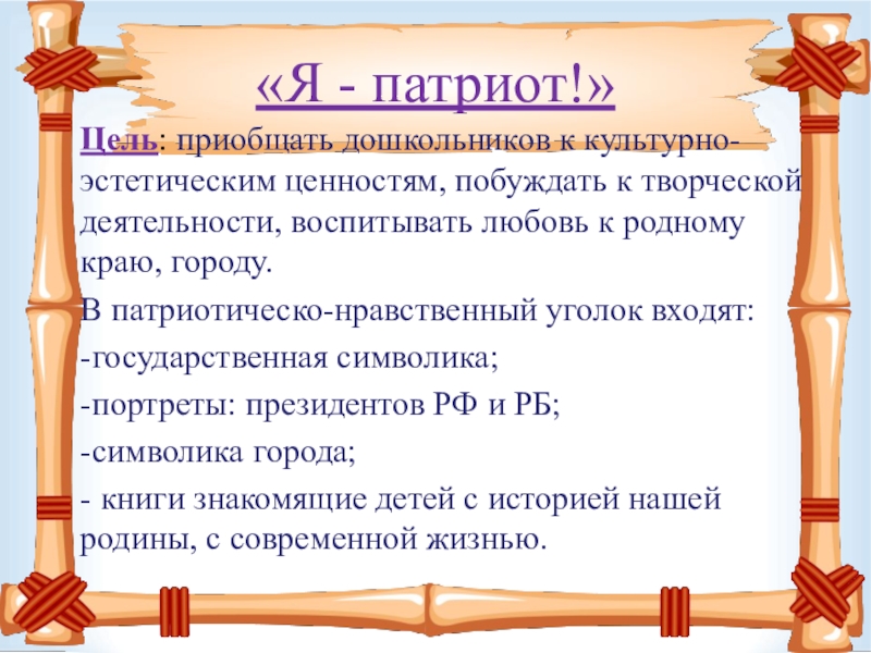 Цель: приобщать дошкольников к культурно-эстетическим ценностям, побуждать к творческой