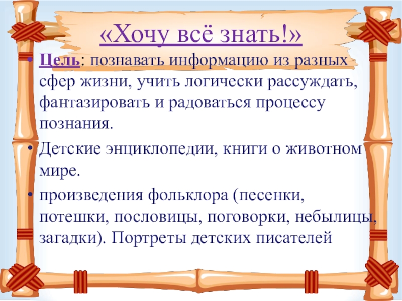 Цель: познавать информацию из разных сфер жизни, учить логически