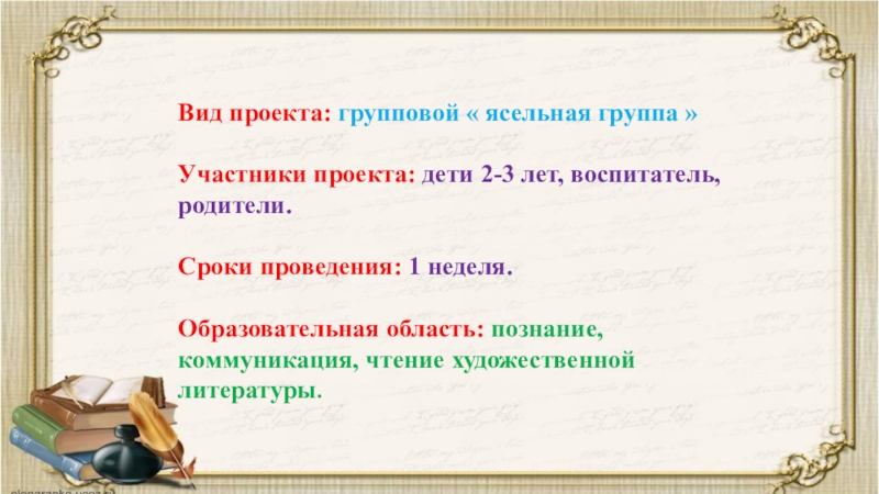 Образовательная область: познание, коммуникация, чтение художественной литературы.
