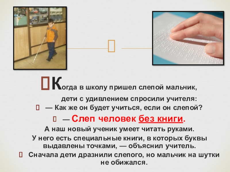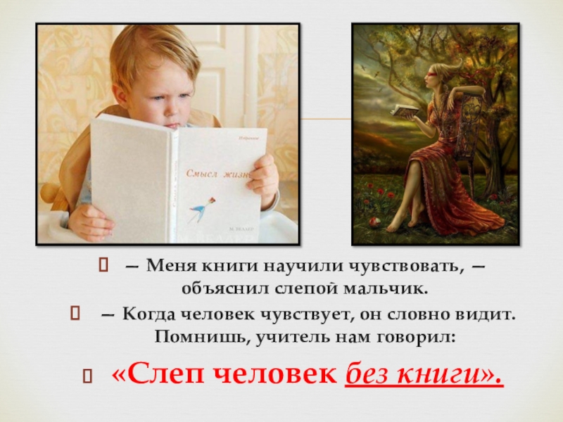 Слайд 6— Меня книги научили чувствовать, —объяснил слепой мальчик.
