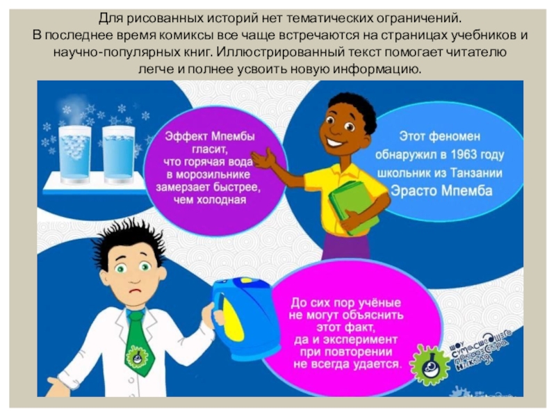 Слайд 15Для рисованных историй нет тематических ограничений.
