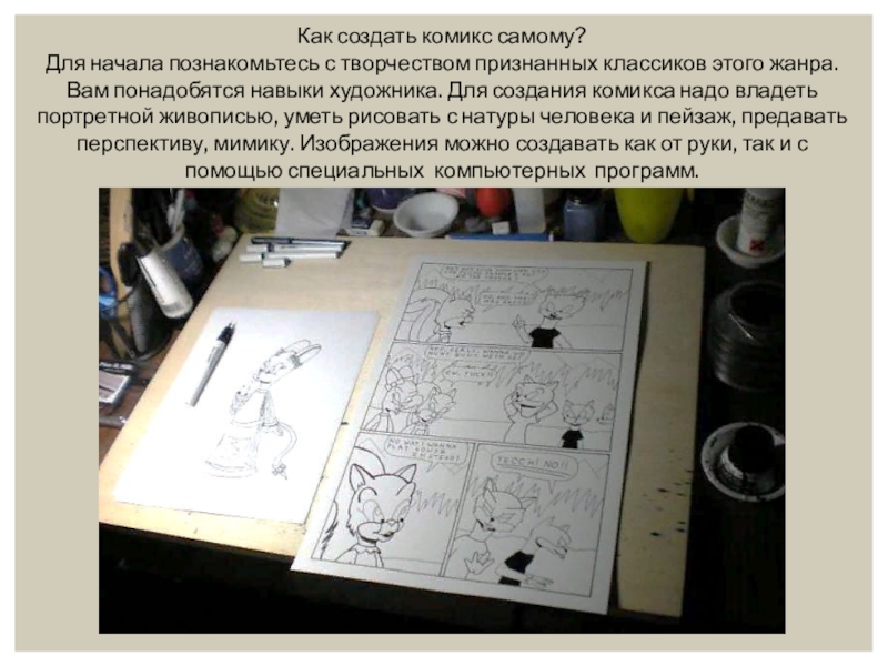 не только художником, но и писателем, способным создать захватывающую историю. Понадобятся также умения сценариста, чтобы разбить сюжет на кадры, придумать лаконичные и выразительные реплики.