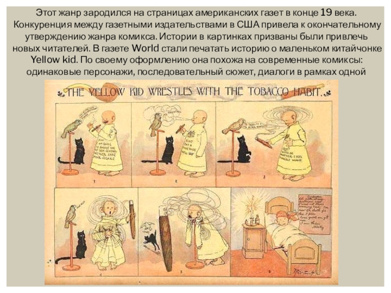 Слайд 10Этот жанр зародился на страницах американских газет в конце 19 века.