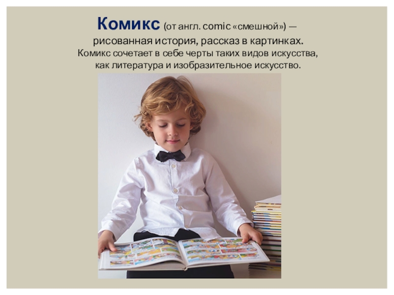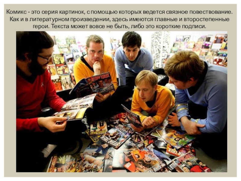 Слайд 13Комикс - это не только картинки, но и ёмкий, лаконичный текст.