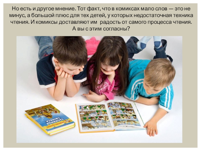 Слайд 7Но есть и другое мнение. Тот факт, что в комиксах мало