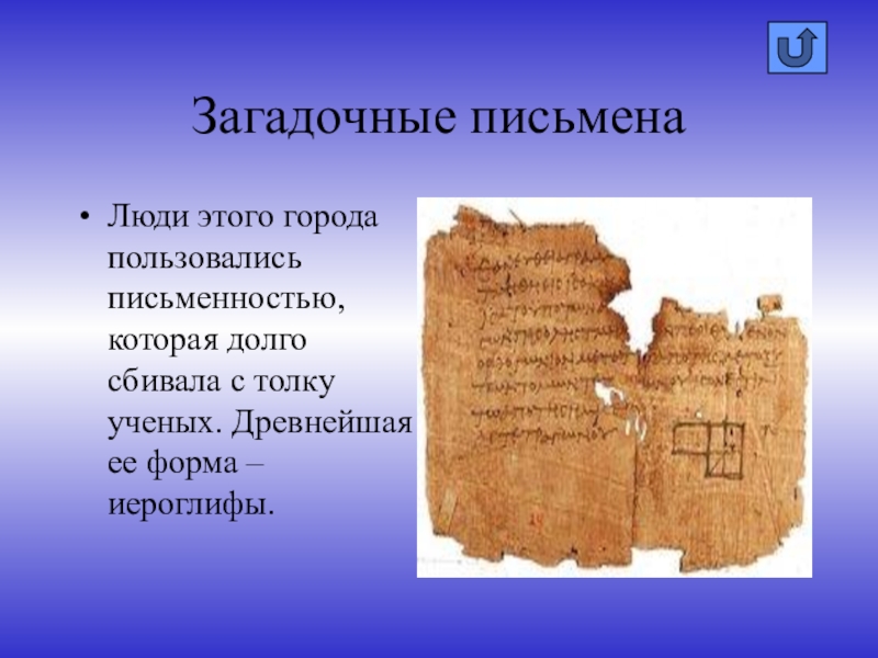 Люди этого города пользовались письменностью, которая долго сбивала с толку