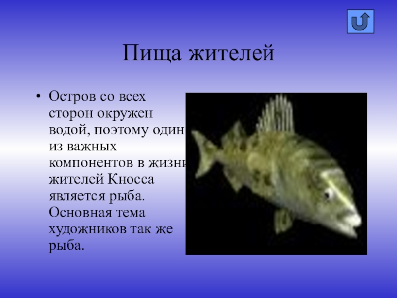 компонентов в жизни жителей Кносса является рыба.Основная тема художников так же рыба.
