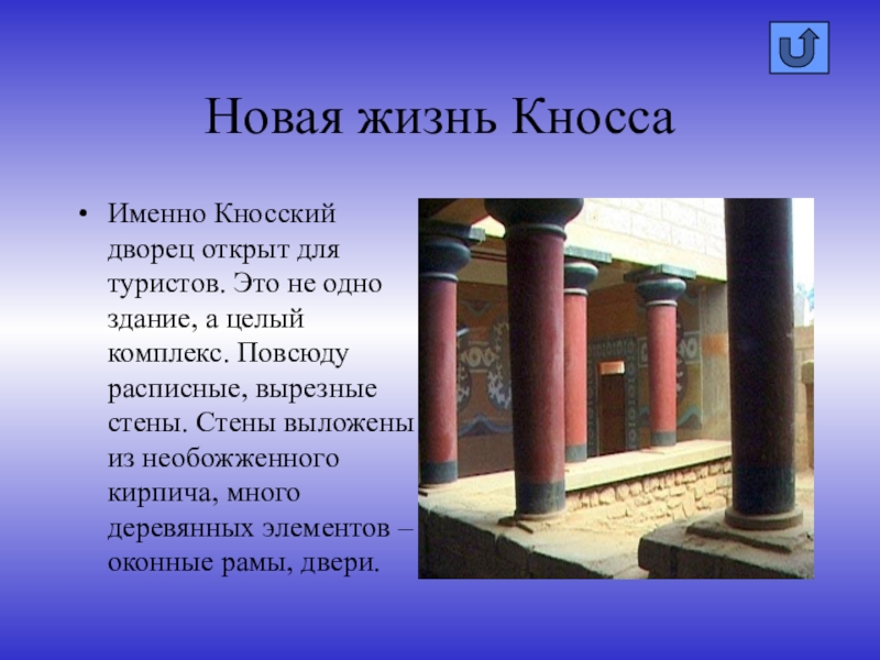 Новая жизнь КноссаИменно Кносский дворец открыт для туристов. Это не одно здание, а целый комплекс. Повсюду расписные,