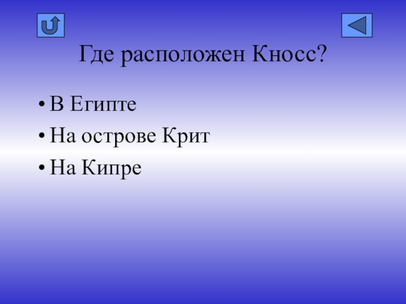 Где расположен Кносс?В ЕгиптеНа острове КритНа Кипре