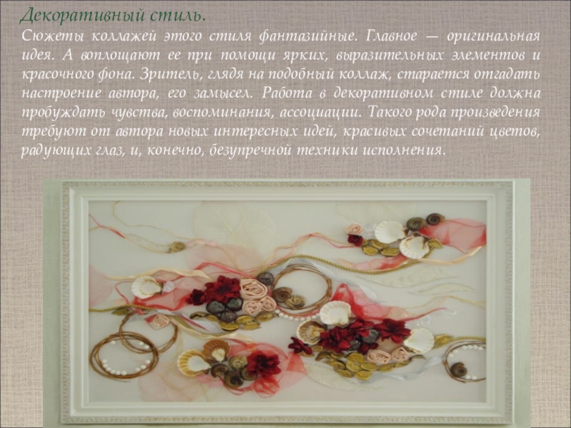 Картины, созданные при помощи металлической стружки, этикеток, фотографий, газетных вырезок и т. п., большей частью шокировали публику. Тем не менее необычное направление искусства продолжало развиваться, и ему отдали дань многие выдающиеся художники.