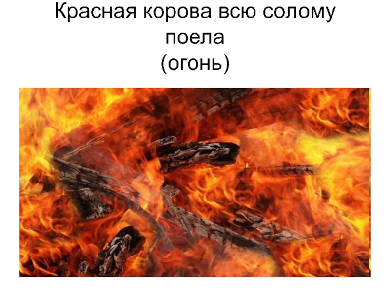 Слайд 12Красная корова всю солому поела (огонь)