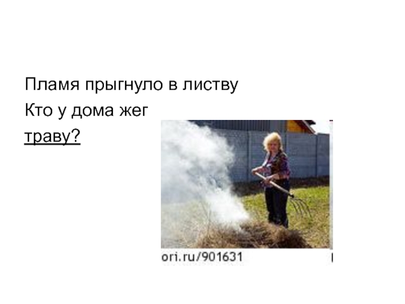 Пламя прыгнуло в листвуКто у дома жег траву?