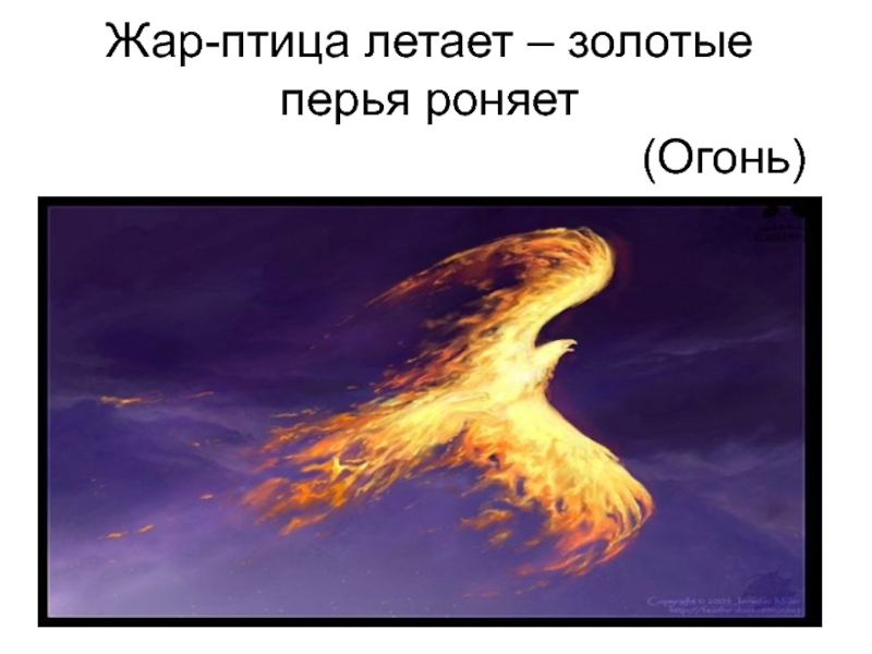 Слайд 15Жар-птица летает – золотые перья роняет