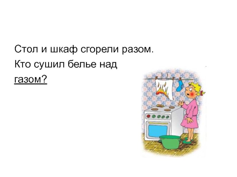 Стол и шкаф сгорели разом.Кто сушил белье надгазом?