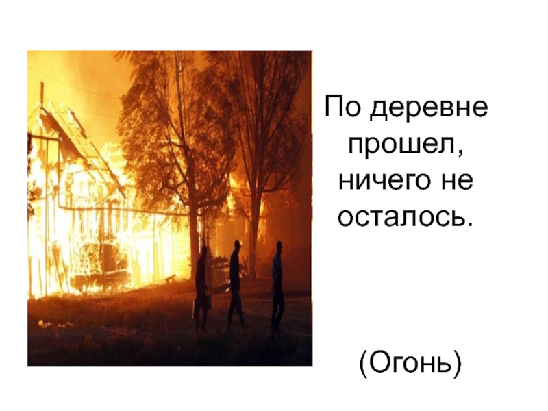 Слайд 9 По деревне прошел, ничего не осталось. (Огонь)